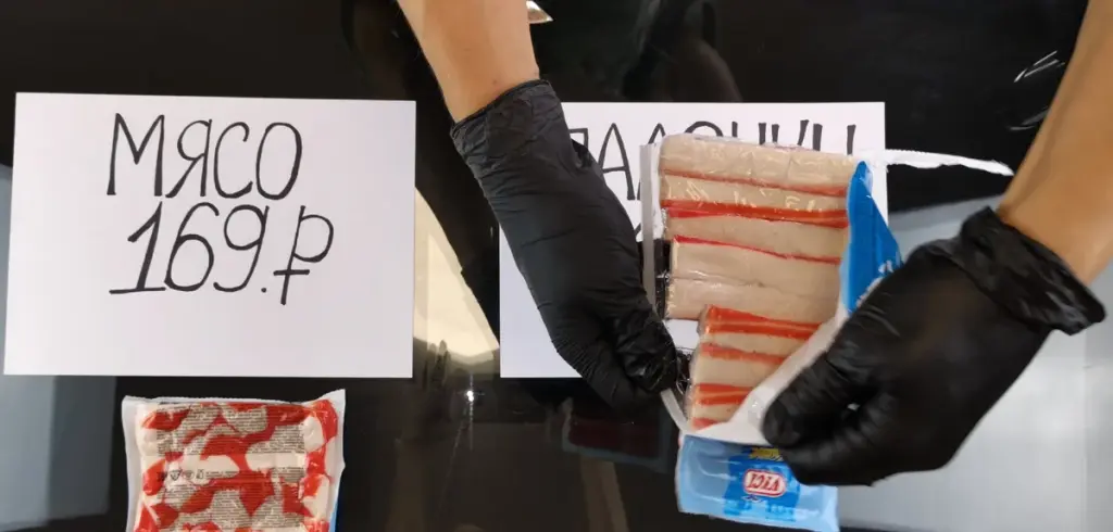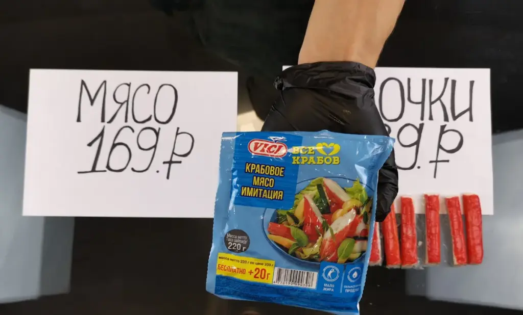 В чем разница "крабовые" палочки за 139.₽ или мясо за 169.₽