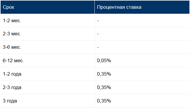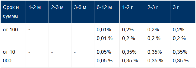 - По вкладам на срок до 6 месяцев (включительно) — по процентной ставке 0,01% годовых.