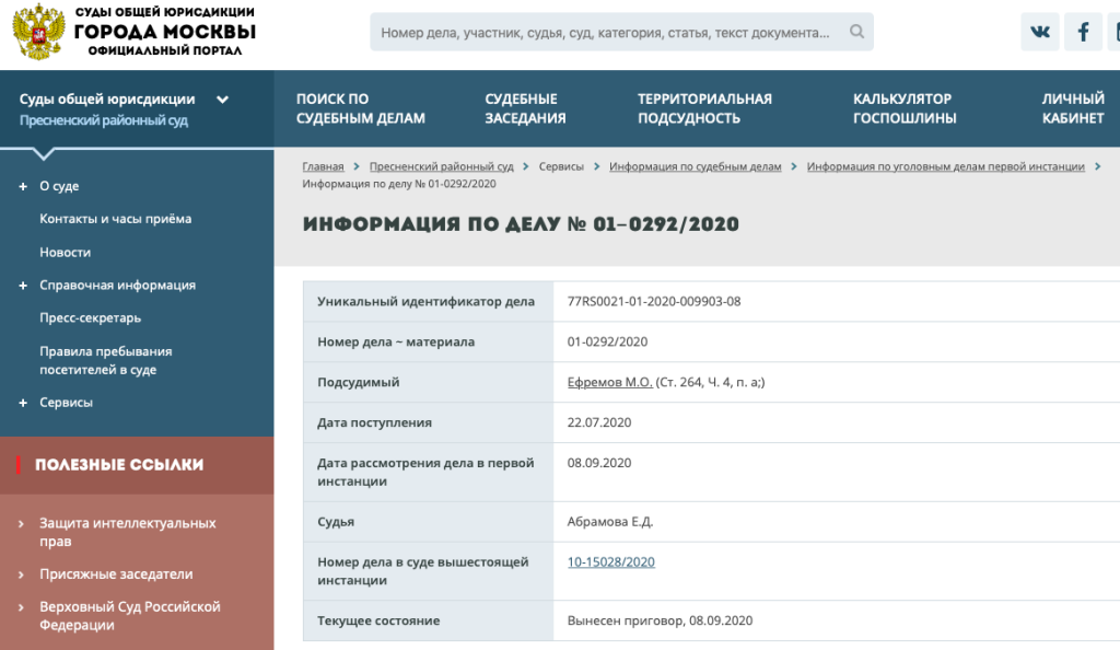 Источник https://www.mos-gorsud.ru/rs/presnenskij/services/cases/criminal/details/d5e7b6da-4363-479e-babb-fef181187660?respondent=ефремов&sessionRangeDateFrom=08.09.2020&sessionRangeDateTo=08.09.2020&formType=fullForm