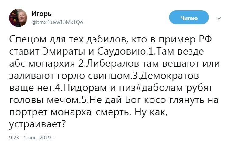 Не стоит перед..., бисер метать! Надо их просто игнорировать, это проплаченная клиника. Эти пациенты уже не лечатся! Наша страна постепенно превращается в Северную Корею, а им всё плюй в глаза, божья роса! Там также, везде внешние враги, шпионы, другие страны показывают только в местах проживания африканских иммигрантов и асоциальных элементов, репрессивная система, отсутствие оппозиции и т.д. Вопрос, ладно они, но ведь у них же есть дети, внуки и спасибо они навряд ли им скажут!