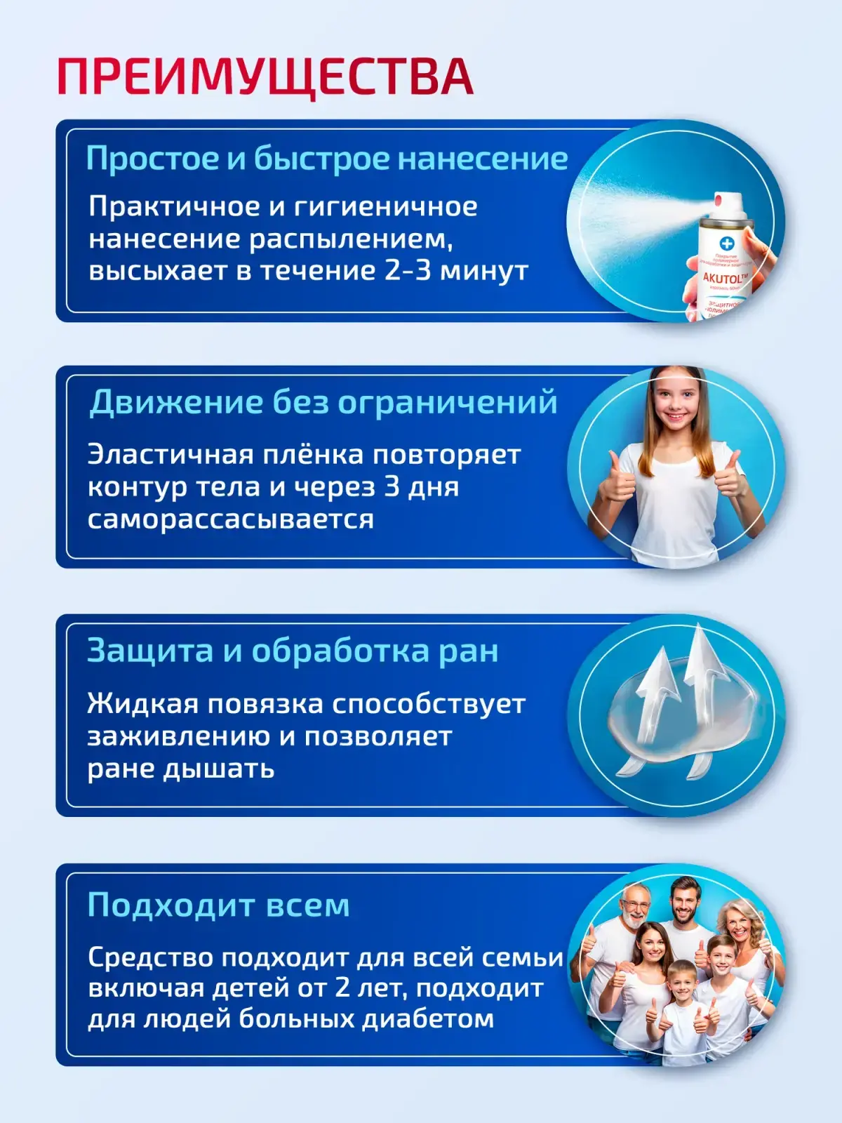 Это да. Но здорово облегчает при уходе за послеоперационными ранами, когда повязка неудобна. Я пользовалась после операции на колене, дня с седьмого. Очень понравилось - и защищает, и дезинфицирует, и не сушит, как йод, например. Только импортным аналогом пользовалась, но с теми же характеристиками.