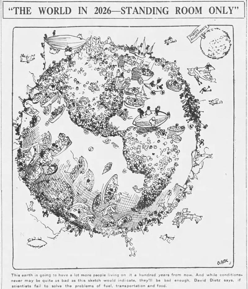 Дэвид Диц предупредил, что к 2026 году население планеты будет настолько велико, что «места хватит только для того, чтобы встать», если не будут решены проблемы с топливом и продовольствием.