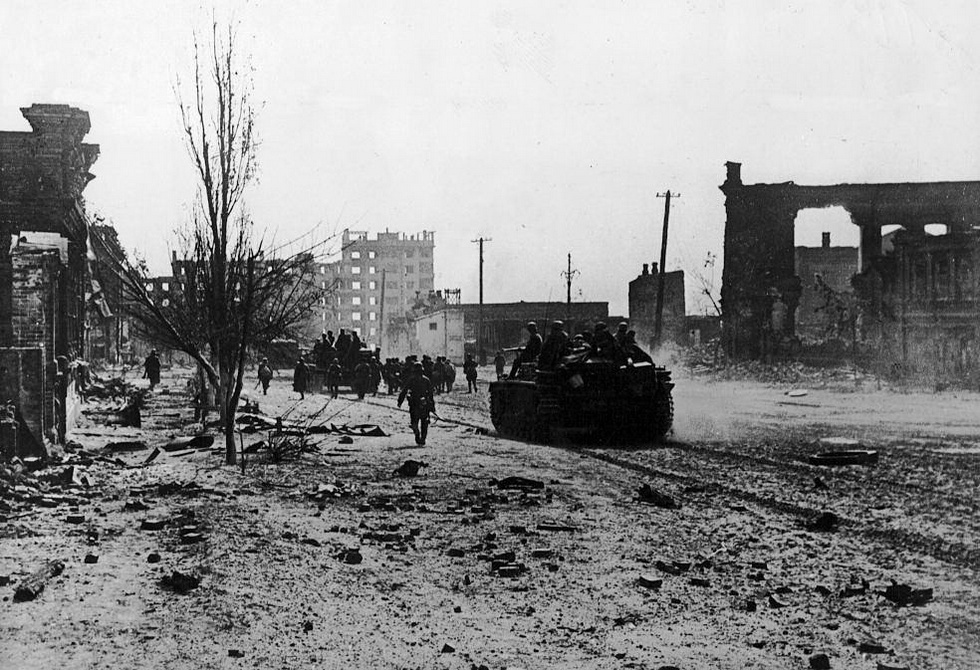 Процветавший до войны Сталинград стал похож на перепаханное поле, развалины построек с печными трубами.