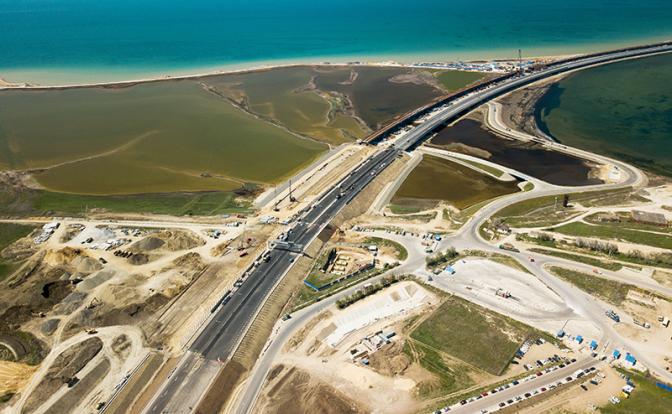 Злые языки твердят, что на автоподходах Керчи еще и конь не валялся. Приходится утешаться новостями непосредственно с моста. Последняя неделя месяца прошла особенно бурно. Вот восемь груженых самосвалов каждый в 35 тонн «нагружали» мост по различным схемам-сценариям, моделируя разные типы и направления нагрузки. Статические и динамические испытания подтвердили надежность и готовность к вводу в постоянную эксплуатацию ключевых несущих конструкций — мостовых опор и пролетов.