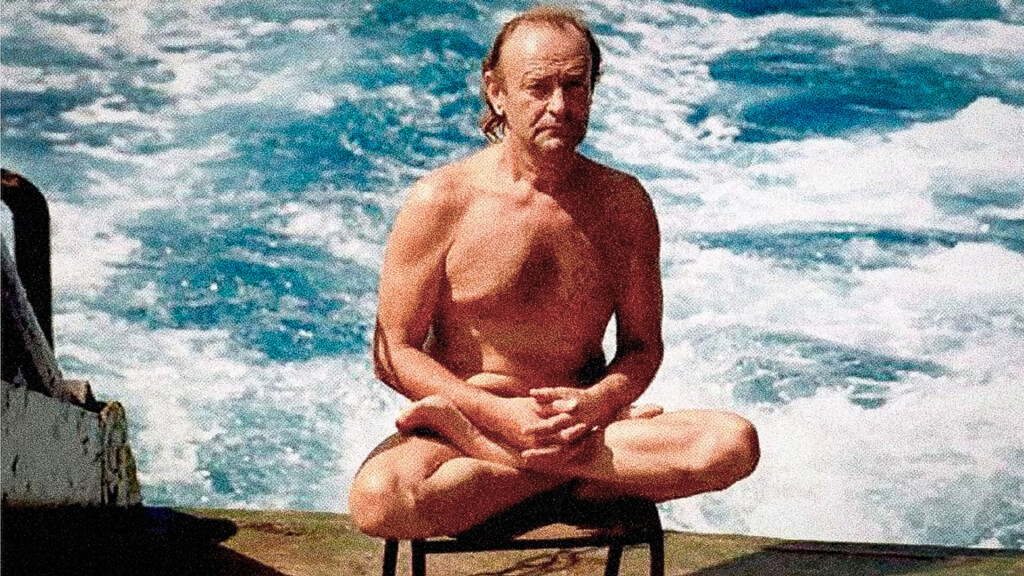 Однажды вечером он просто подходит к краю палубы и прыгает за борт с высоты 12 метров. У него с собой ласты, трубка и маска. Чудом его не перебивает корабельным винтом.