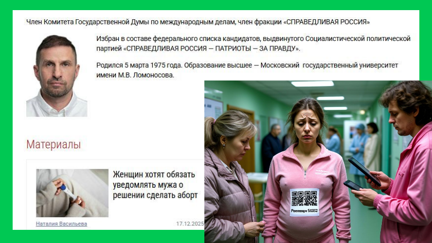 Официальная позиция законопроекта — не вмешиваться в решение женщины. Аборт по-прежнему остаётся её личным выбором. Но теперь этот выбор придётся сопроводить извещением, будто вы оформляете подписку на «Свою игру»: «Поздравляем! Вы решили прервать беременность. Пожалуйста, уведомите супруга. Спасибо, что выбираете ответственность!»