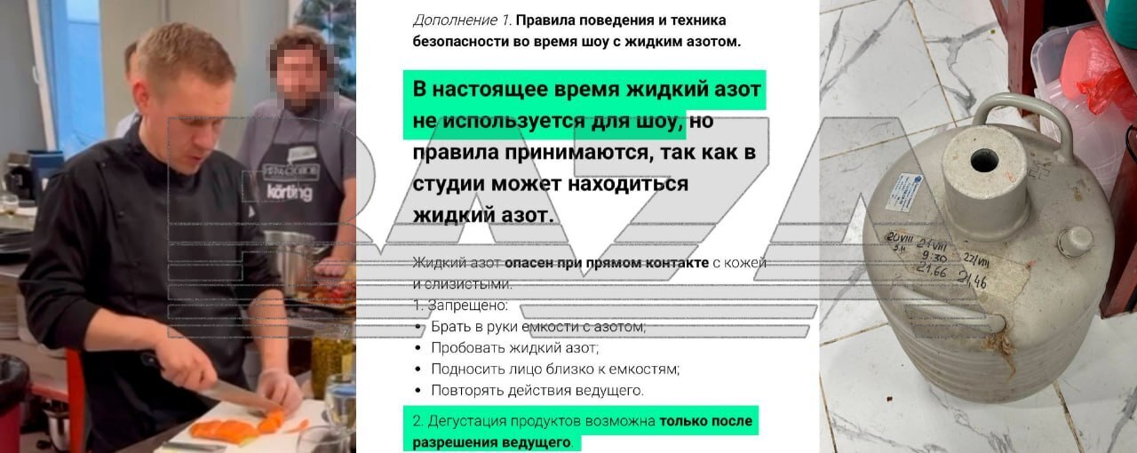 Компания москвичей устроила себе предновогодний праздник в кулинарной студии "Игра столов" , шеф повар решил удивить гуляк и готовил им коктейли с жидким азатом.
