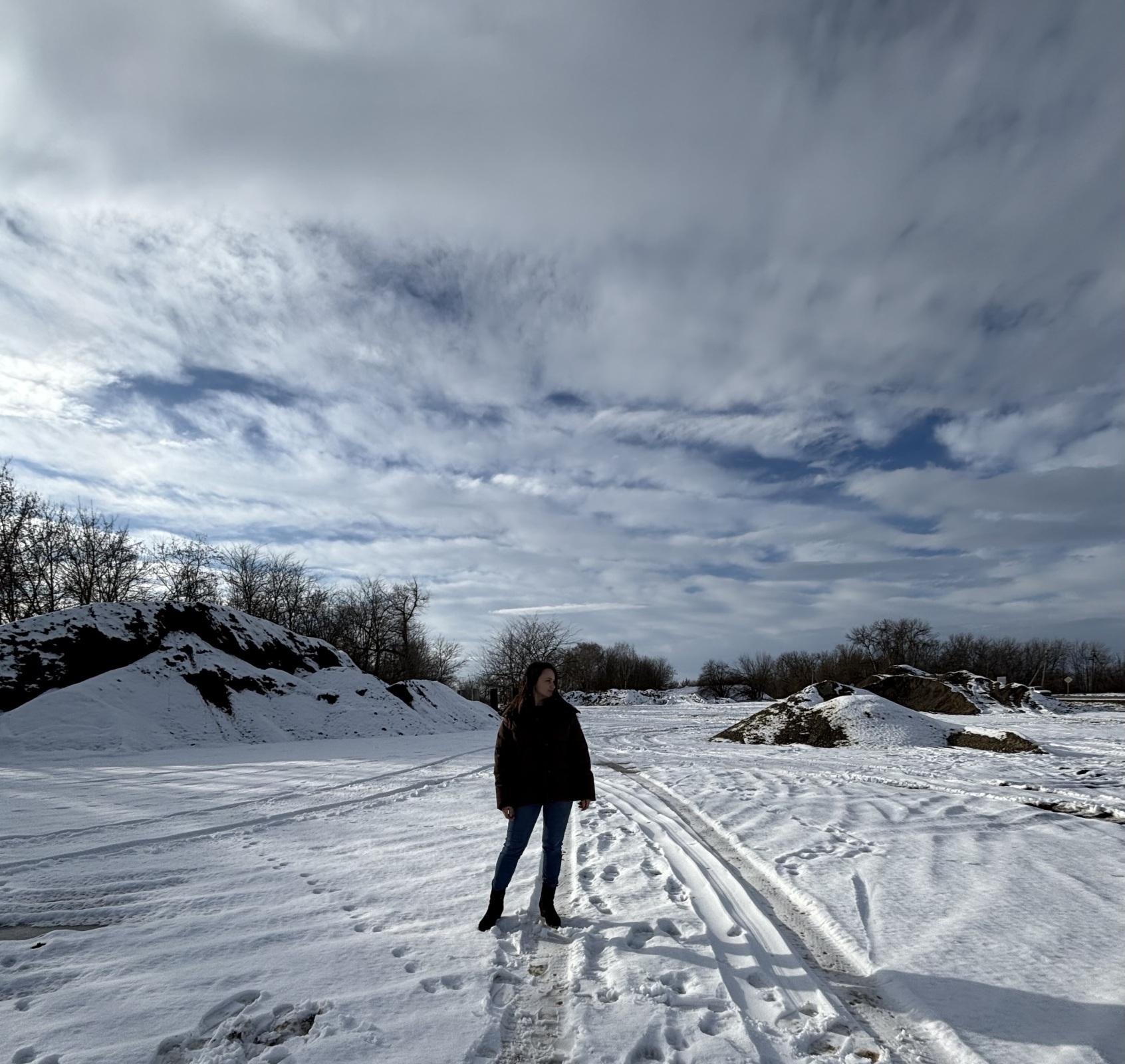 У нас снега нет. Голая земля, которую нещадно заливал дождь.