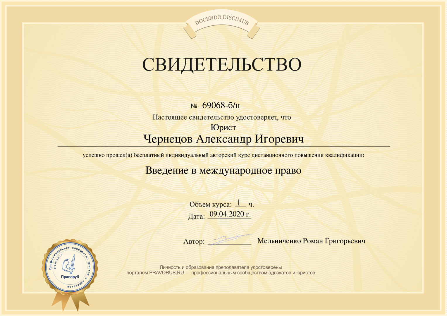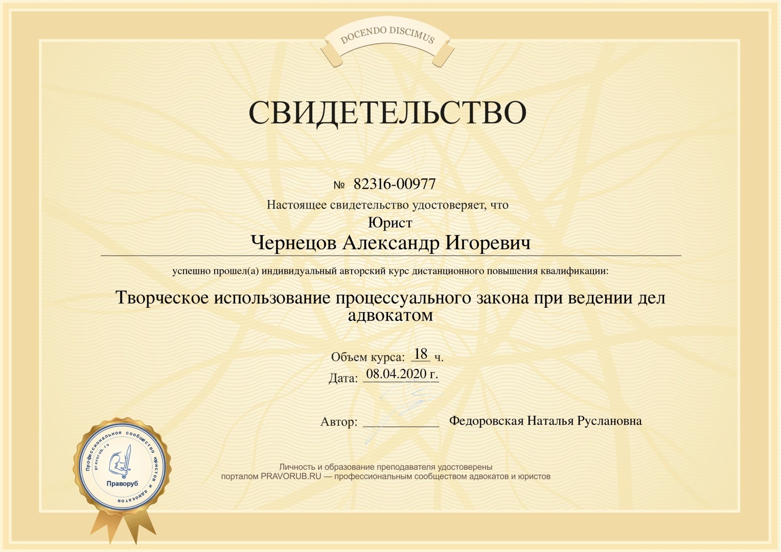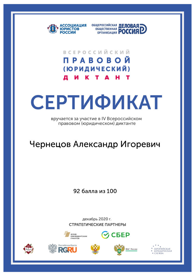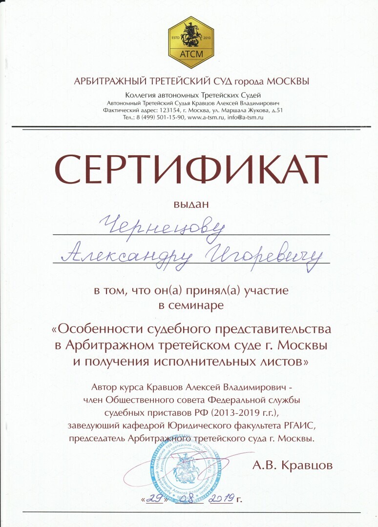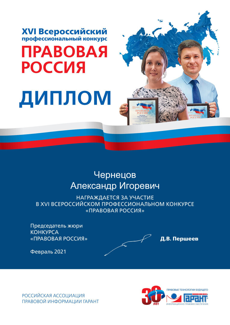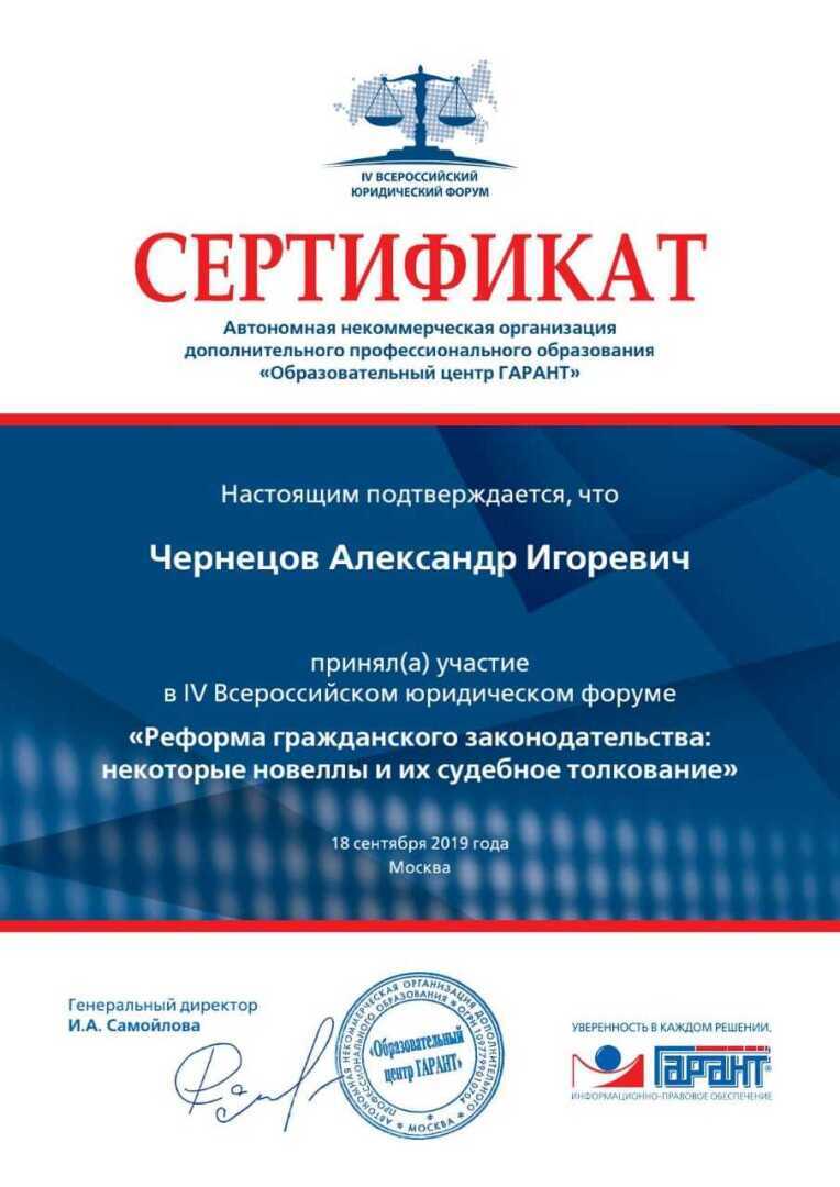 Ведущий юрист Чернецов Александр Игоревич, г. Москва