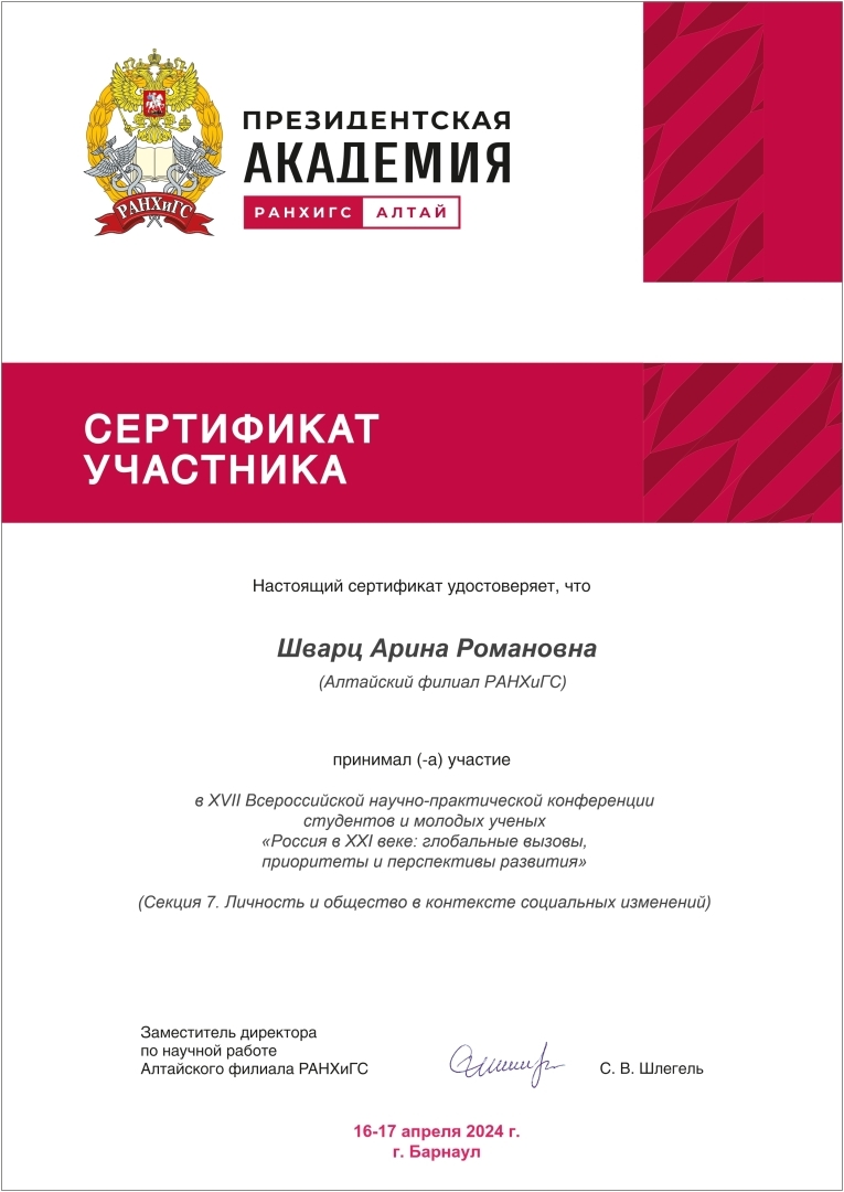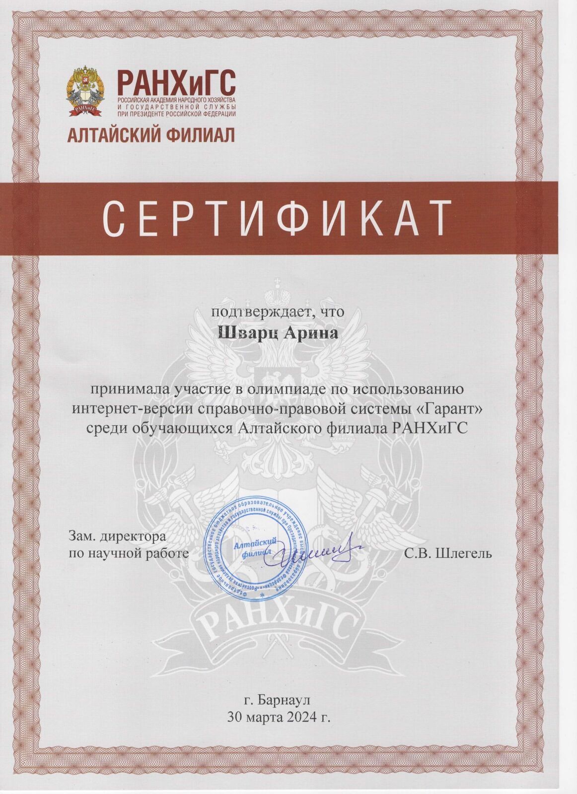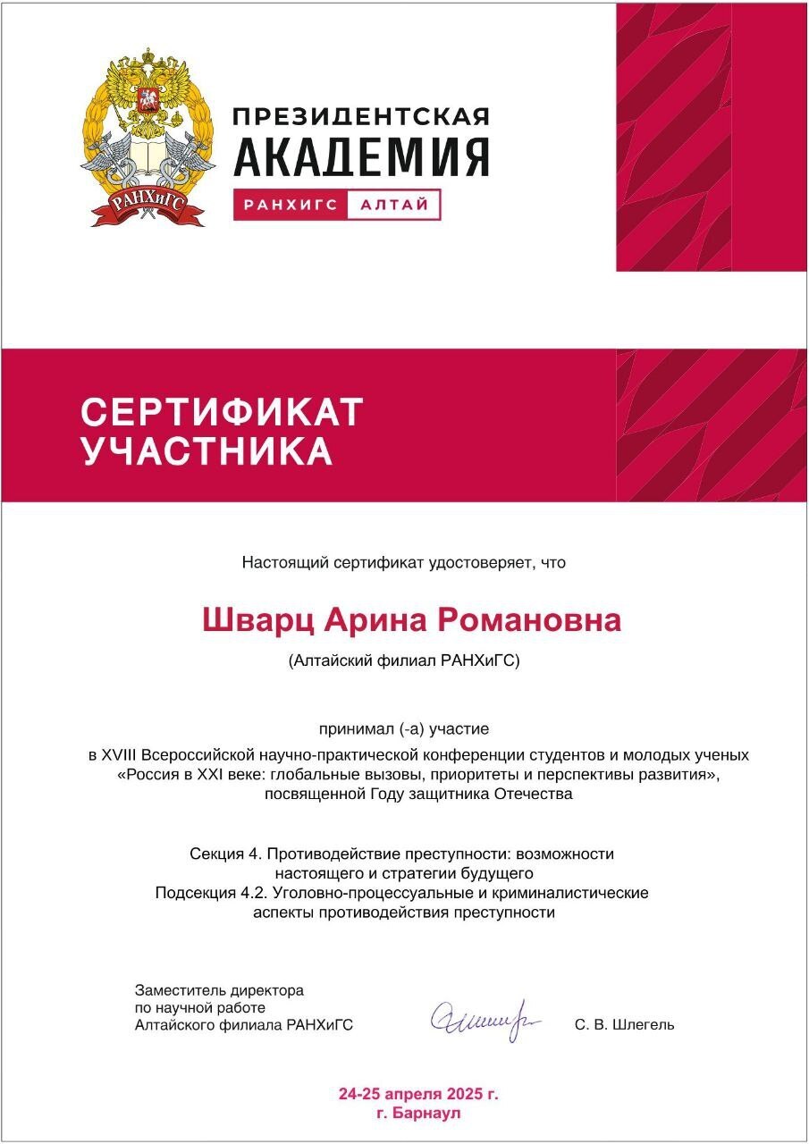 Высшее•Алтайский филиал Российской академии народного хозяйства и государственной службы при Президенте Российской Федерации•Юриспруденция•Барнаул•год окончания: 0