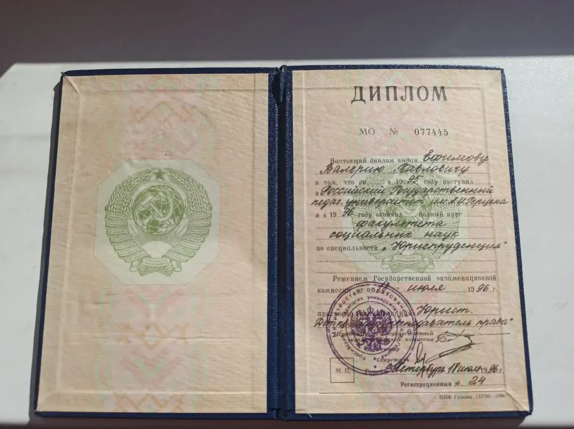 высшее юридическое•Российский государственный педагогический университет им. А.И. Герцена•Юриспруденция (Юрист)•Санкт-Петербург•год окончания: 1997
