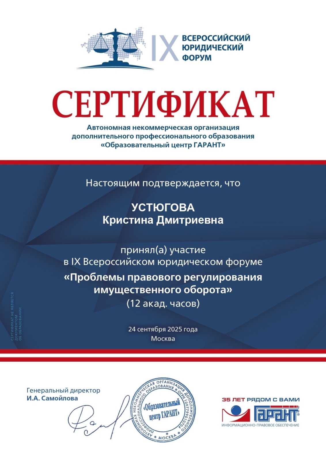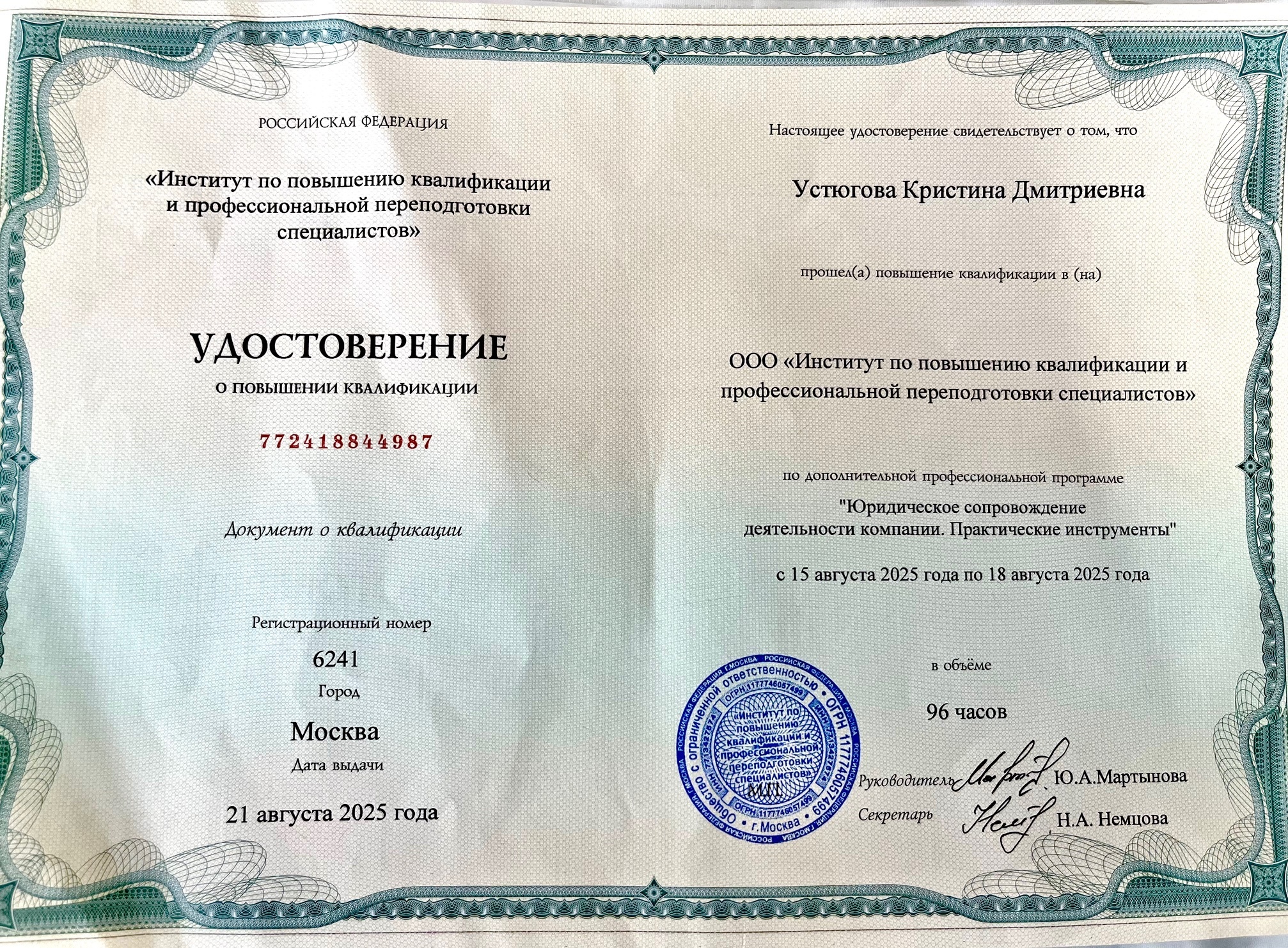 Юрист Устюгова Кристина Дмитриевна, Тюмень - отзывы