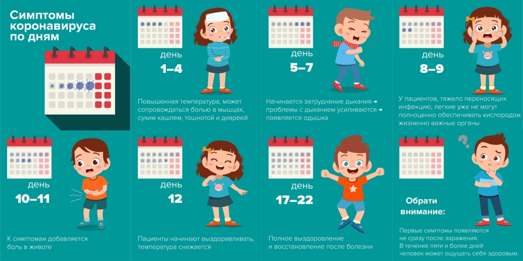 Среднее время инкубационного периода составляет чуть более 5 дней. В течение 11 дней симптомы проявляются у 97.5 процентов заболевших. Это полностью оправдывает введенный 14-дневный карантин для всех пассажиров, прибывших из неблагоприятных стран.