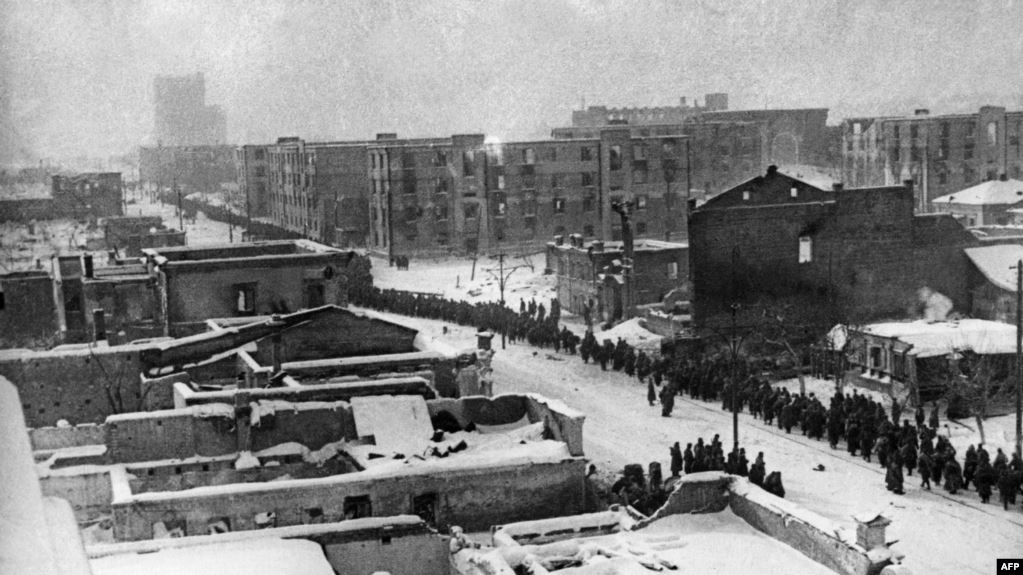 Колонна военнопленных солдат вермахта в Сталинграде