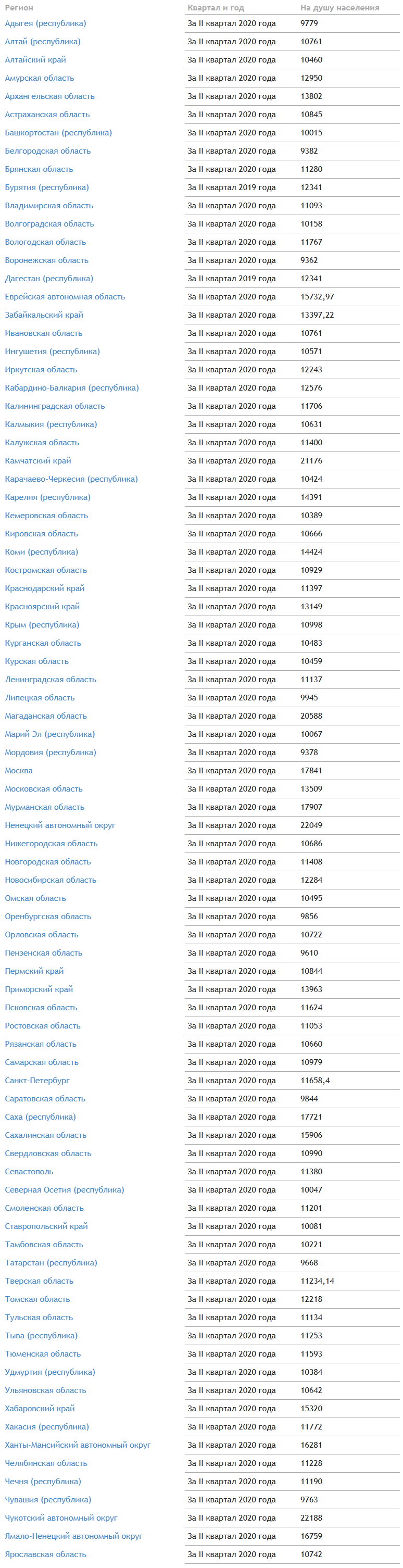 Прожиточный минимум за 2 квартал 2020 года по регионам России. Полный список