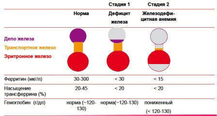 Это обусловлено особенностями строения женского организма. Все железо, которое получает женщина с пищей, делится. Меньшая его часть откладывается в депо организма, а большая идет на нужды. Так, железо выходит в состав крови и используется во время менструации, родов, а так же беременности.