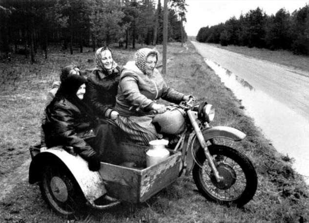 А почему бы не показать нынешние деревни и их разбитые/заброшенные фермы? И эту же грязь на дорогах? И свалки нынешних времен? Можно даже не свалки, а просто места установки контейнеров.