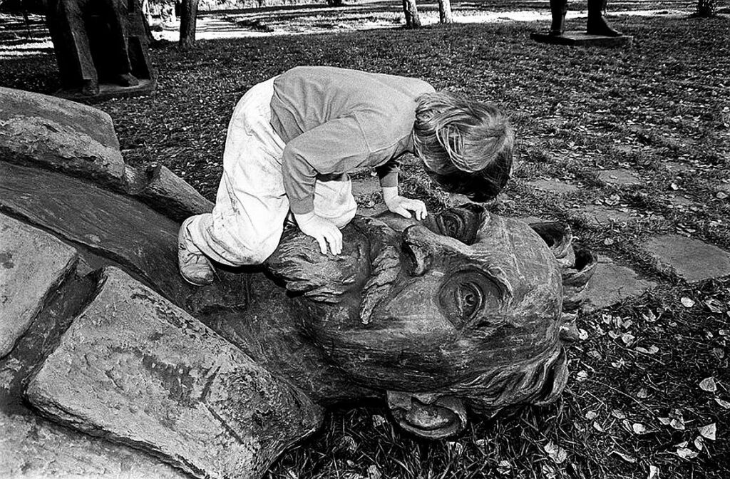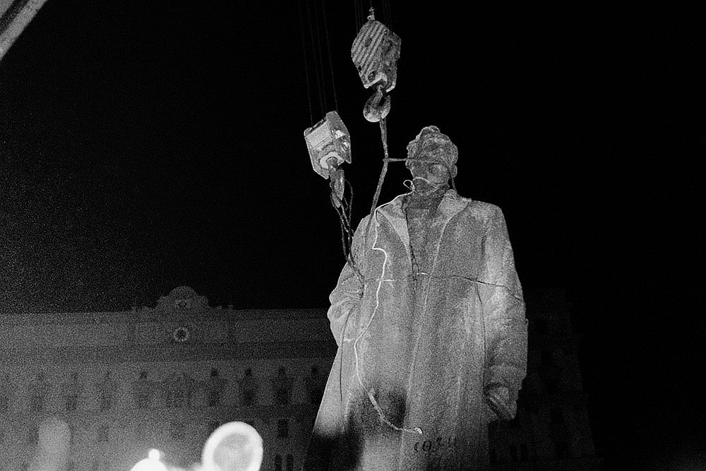 "Вот профессионалы все сделали правильно, погрузили мы его на платформу, увезли на Крымскую набережную. В последний момент, когда полметра оставалось до платформы, произошел последний прорыв людей, и где-то с полчаса было полное безумие вокруг этой статуи… С плясками, лозунгами, обниманиями. А статуя эта висела...".