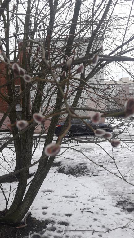 Город и асфальт - вербе не помеха. Она жива и живет.