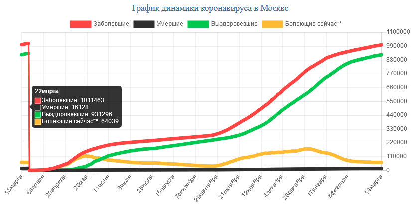 На сегодня, 22.03.2021, в Москве всего зарегистрировано: