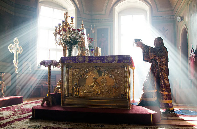 Несмотря на то, что по понедельникам Великого поста литургия не положена, в связи с праздником совершается литургия Преждеосвященных Даров.