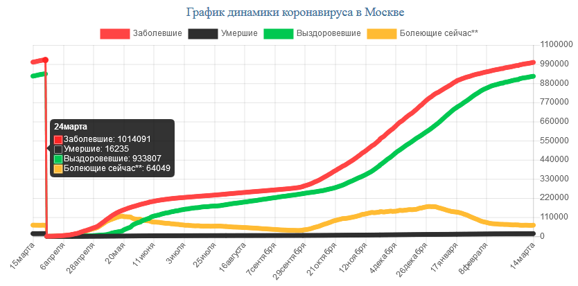 На сегодня, 24.03.2021, в Москве всего зарегистрировано: