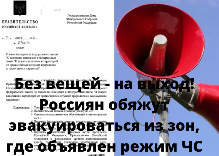 И что мы видим? 1 марта, начало весны, и правительство вносит законопроект для того, чтобы в случае возникновения какой-то ситуации людей эвакуировать на какую-то территорию.