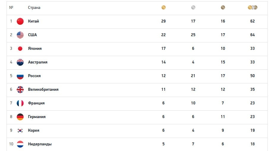 Медальный зачет Олимпиады в Токио на 03.08.2021