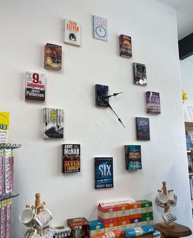 Еще одна интересная дизайнерская находка - часы из книг! Обратите внимание, что на них написано. Увидели?