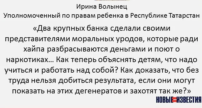 «Я считаю, что в России существует педофильское лобби. В него входят разные люди, тайно и открыто. Они есть и в Госдуме, и в Совете Федерации... Они есть везде! Вы что, думаете, эти люди ходят с лейблом "Педофил"? У нас сегодня лучшая форма легализации педофильского сообщества - это общественные организации, которые отстаивают права детей.