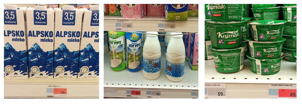 Цены на молоко примерно 66 руб. за литр, йогурт 60, а любимый мною каймак, который у нас стоит 150 руб. за баночку 250 мг, здесь вам обойдется в 66 руб.