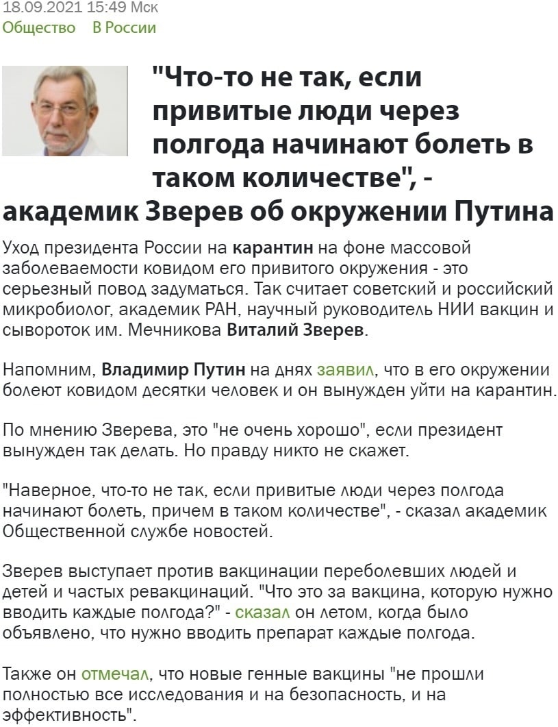 И почему Владимир Владимирович откровенно признался, что эта вакцина испытывается на населении целой страны - без нашего спроса и разрешения? Мы что, бараны, на которых можно эксперименты ставить?