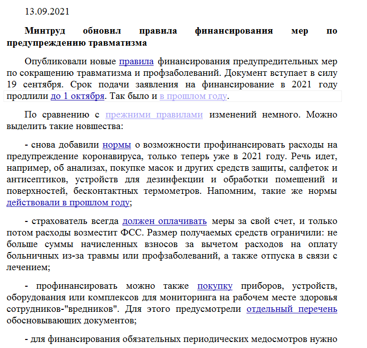 Минтруд обновил правила финансирования мер по предупреждению травматизма