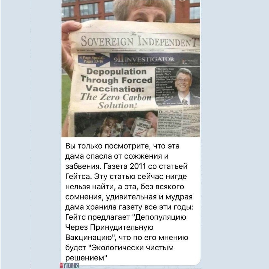Тем наивным чебурашкам, которые до сих пор не поняли, что вся это коронабесная фуфлодемия с навязанной "добровольной" вакцинацией отравленной жижей, идет из одного центра и давно запланирована нечеловеческой нежитью - этим наивным чебурашкам хочу привести один факт. Это интервью Билла Гейтса американскому изданию, где он прямо заявлял (нежить не скрывает своих планов), что они имеют планы сокращения населения с помощью вакцин. Спасибо женщине, которая сохранила для истории этот факт: