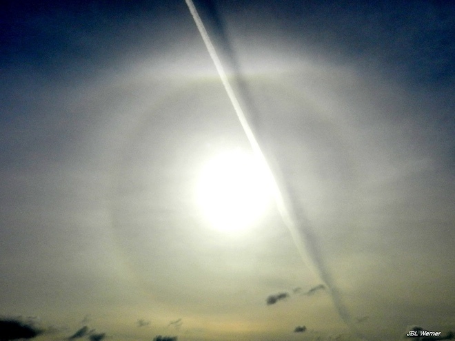 Древние священные книги говорят, что в последние времена в небе будет очень много знаков и различных явлений. Ну, про всяческие НЛО мы уже наслышаны. Сейчас понемногу пробивается в информационное пространство информация про т.н. химтрейлы. Но, что характерно - эти химтрейлы оставляют в небе странные тени. Вот, интересно, как такое может происходить?