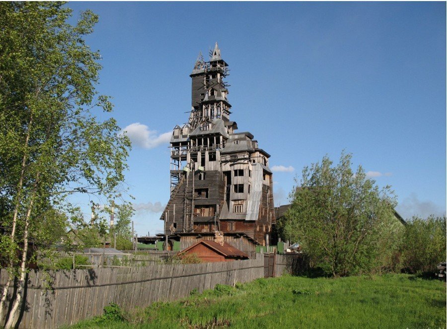 История, конечно, курьезная и в чем-то трагическая, но первый деревянный «небоскреб» забабахал в Архангельске в начале 1990-х годов российский предприниматель Николай Сутягин. Задумывалась двухэтажная деревянная дача, которая по ходу дела выросла до 13 этажей и стала одной из достопримечательностей города. Понятное дело, дом строился без соблюдения архитектурных норм и требований пожарной безопасности. Поэтому не сразу, но все же через суд его заставили укоротить. В 2008 дом был разобрали до четвертого этажа. В мае 2012 года оставшаяся часть сгорела в пожаре.