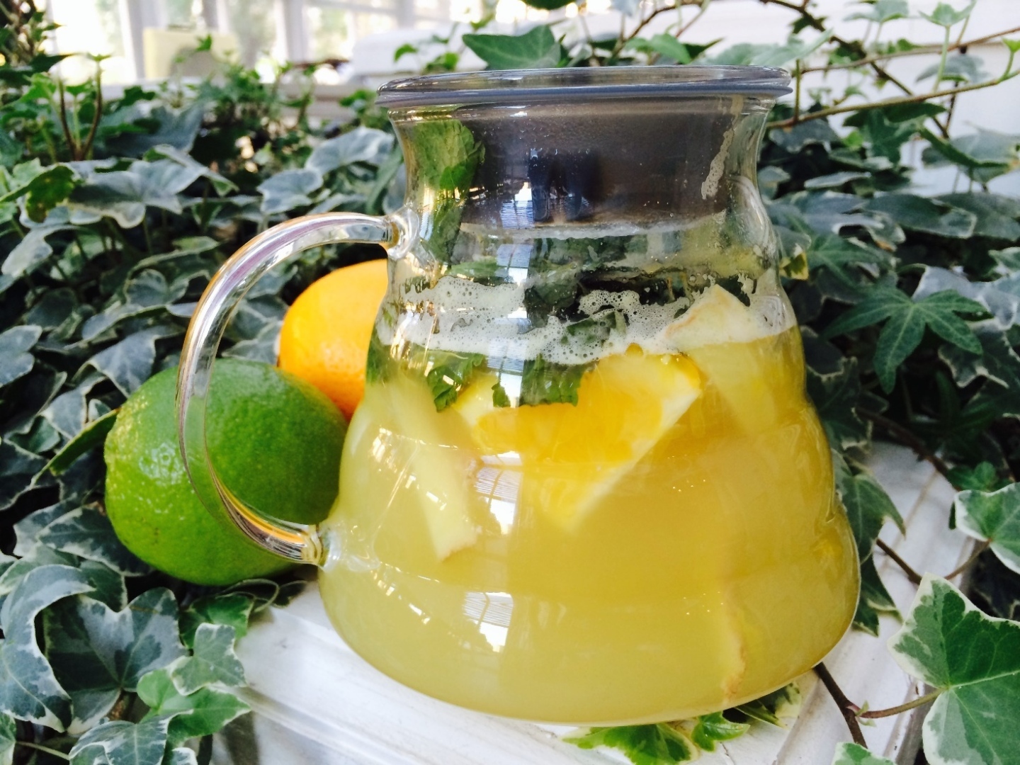 2. Апельсин и лайм размять, добавить мед и имбирный сок.