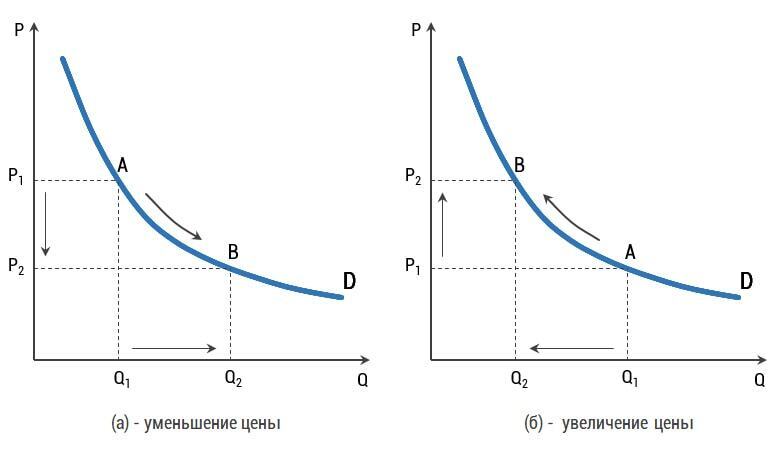 При этом не забываем, что если изменению подвергается исключительно цена, то изменяется количество спроса, а не сам спрос - это разные вещи!