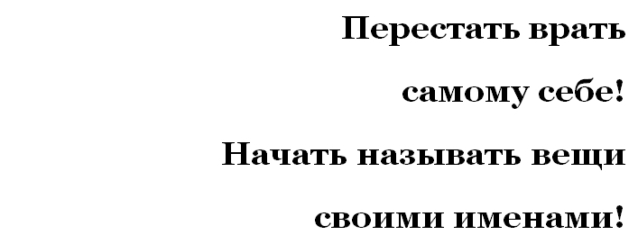 Уверен, что в Начале будет сакраментальное "Перестать врать самому себе!"