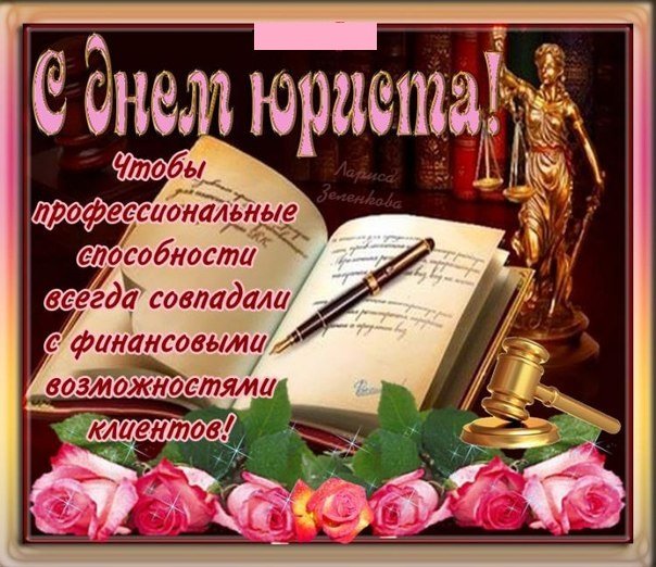 Уважаемые коллеги,с Днем юриста! Здоровья вам и вашим близким! Благополучия ,тепла и уюта!