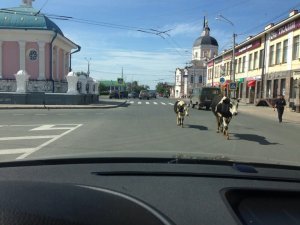 Прохожие позвонили в полицию около полудня (около 9 утра по московскому времени). Прибывшие сотрудники ГИБДД обнаружили корову с теленком, которые паслись рядом с площадью Ленина. Полицейские увели скот с дороги, в результате инцидента никто не пострадал. Сейчас стражи порядка ищут владельца коровы и теленка.