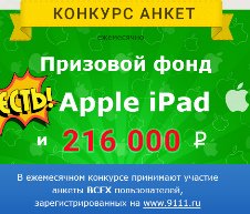Конкурс анкет от 9111.ru. Выиграй Apple iPad mini или деньги!