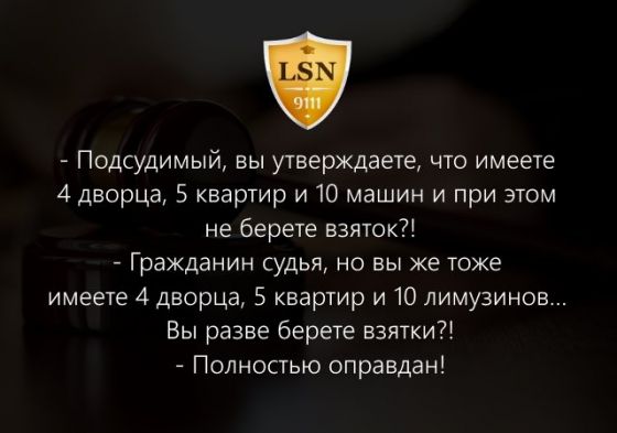- Гражданин судья, но вы же тоже имеете 4 дворца, 5 квартир и 10 лимузинов… Вы разве берете взятки?!
