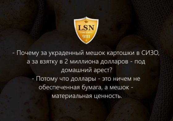 Вот если бы МИНИСТР украл мешок картошки, тогда бы и он сел в СИЗО. А так всего лишь два лимона американских бумажек. Вы о чем?