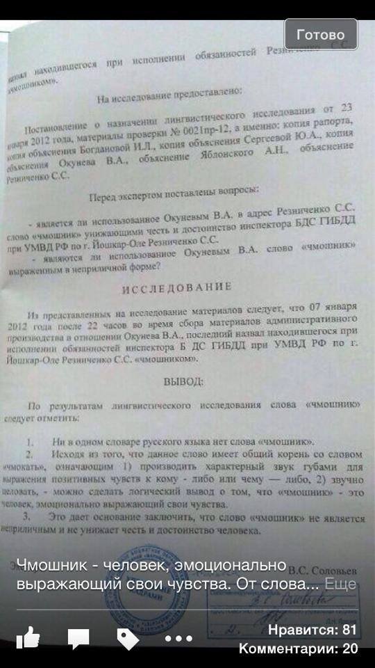 Эксперты пришли к выводу, что негативная информация, которую передает сообщение является оценочной, в связи с чем ее нельзя проверить на соответствие действительности. Также отмечается, что форму подачи информации нельзя считать неприличной, так как она является частью неформальной коммуникации в сети.