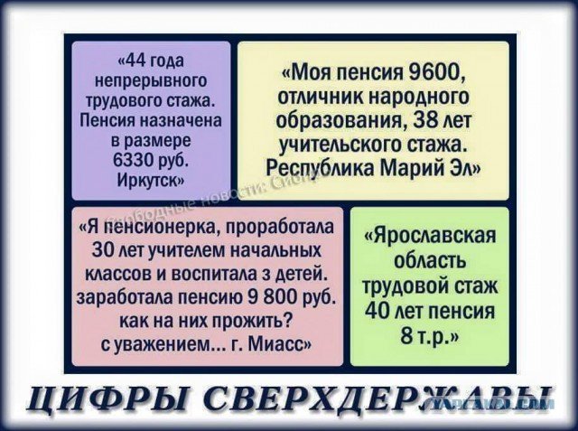Наши пенсии у министров и депутатов в кармане а президент видимо от них кормится зарплата в среднем по стране 13,5тыс.руб. а уних миллионные оклады , обкрадывают свой народ,но думаю народ поднимется им мало не покажется