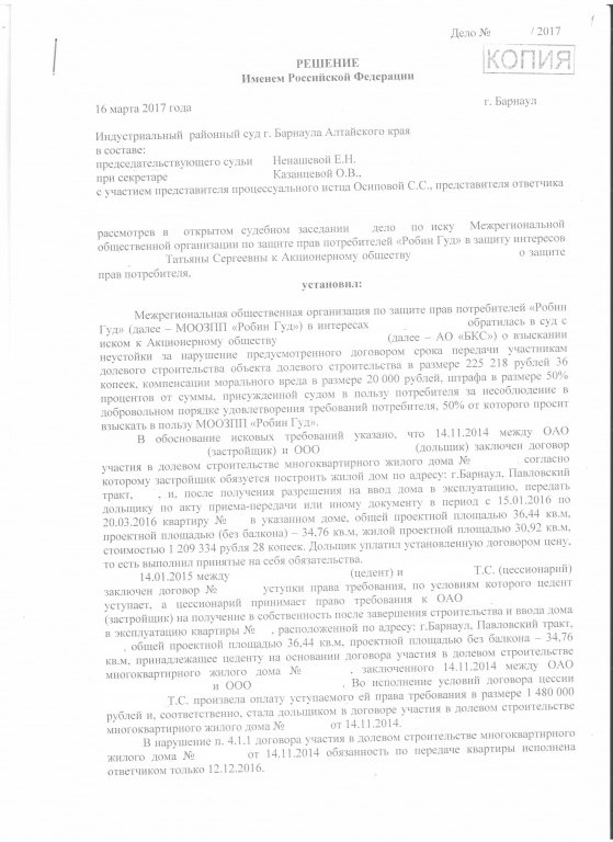 Из юридической практики. Судебное разбирательство проведено при моём участии в качестве представителя лица, в чьих интересах был заявлен
