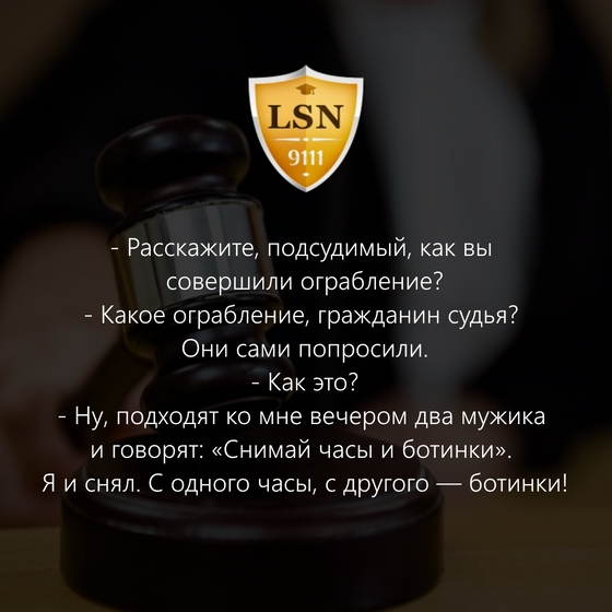Судья: — Подсудимый, зачем вы обокрали потерпевшего? Ведь вы же и сам очень богатый человек!