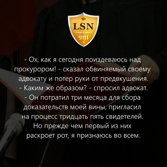 Черный юморок) Обвиняемый-преступник подлец из подлецов, кроме следователя и прокура, проигранное дело адвокату замутил, я знаю что мы все "невиновны" до решения суда, просто пишу что он преступник исходя из текста где он фактически признается в этом.