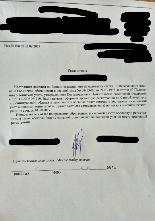 Как же в нашей стране могут все довести до абсурда. В двух местах постоянно быть зарегистрированным просто невозможно. Чтобы постоянно зарегистрироваться, надо сняться с регистрационного учета в Вологодской области, временную регистрацию получать? Зачем вообще прописку отменяли? Шило на мыло? Регистрация сегодня, по сути, адрес, по которому с гражданином можно связаться. Мобильная связь кругом. Какая разница из какого Военкомата его будут призывать на службу Отечеству Вологодской или Ленинградской областей?
